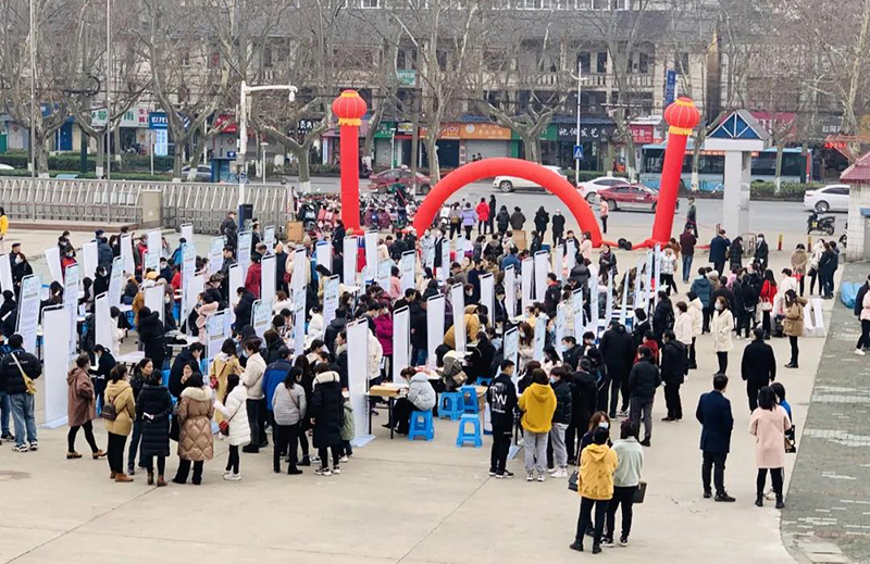 2020年1月,受花山區(qū)人社局委托,新華人力主辦“春風(fēng)行動,接您回家”四送一服專場招聘會,參會企業(yè)85家,提供就業(yè)崗位2850個。